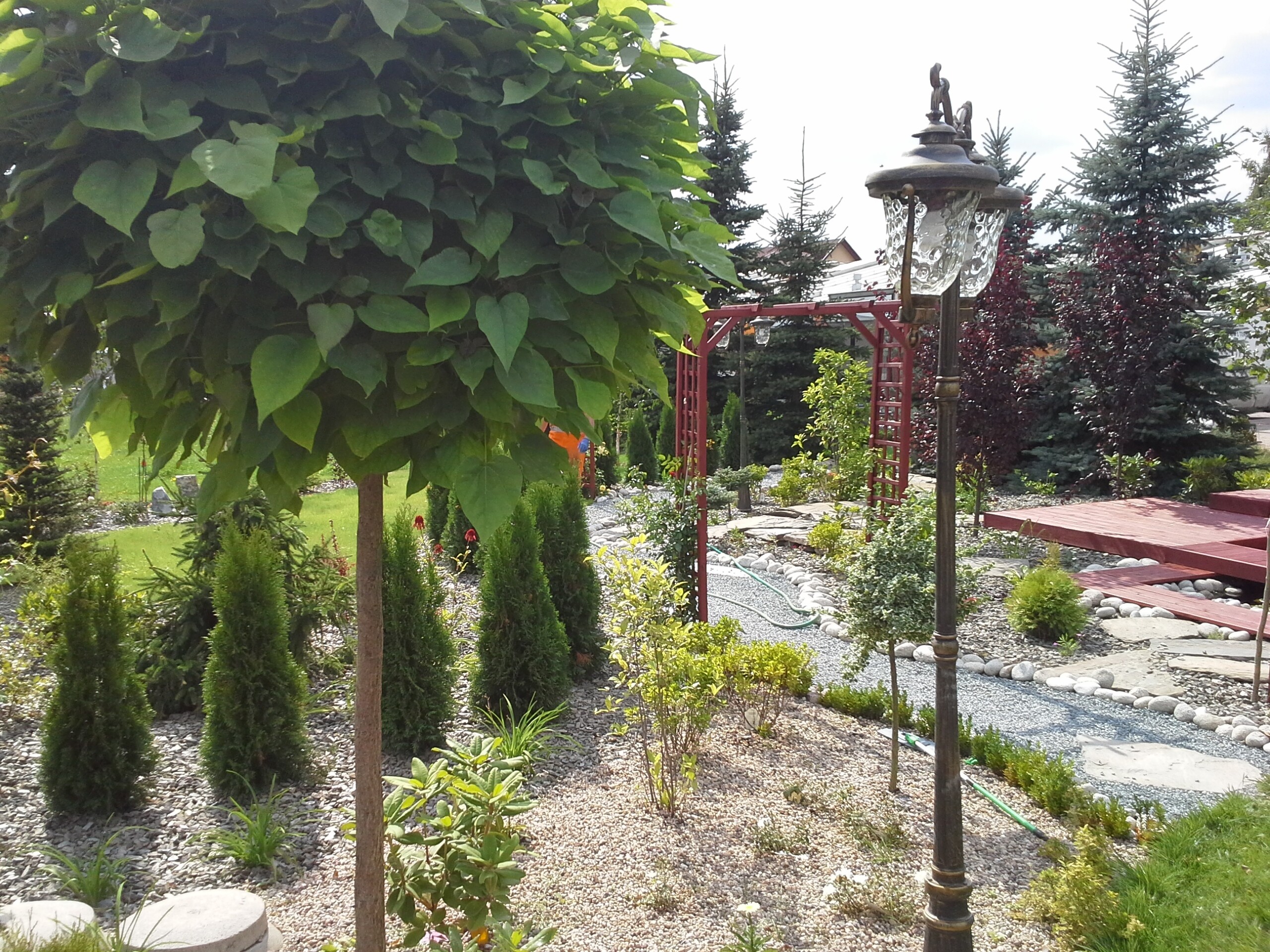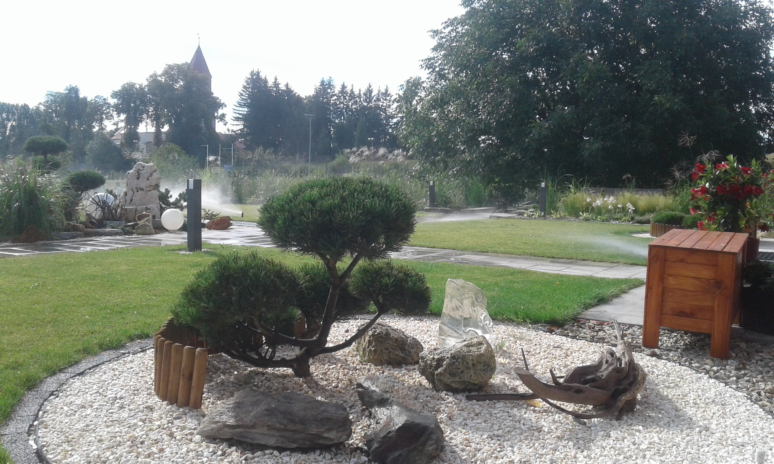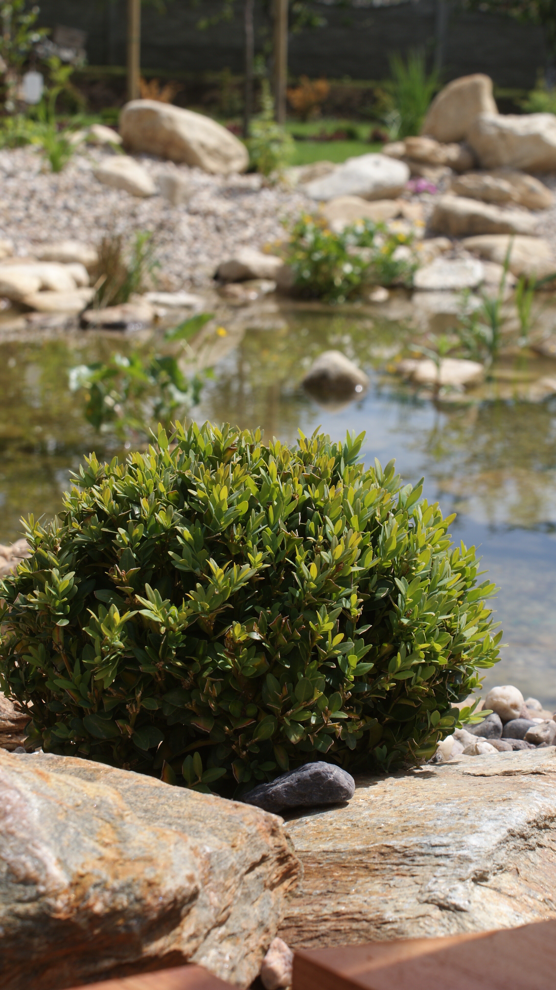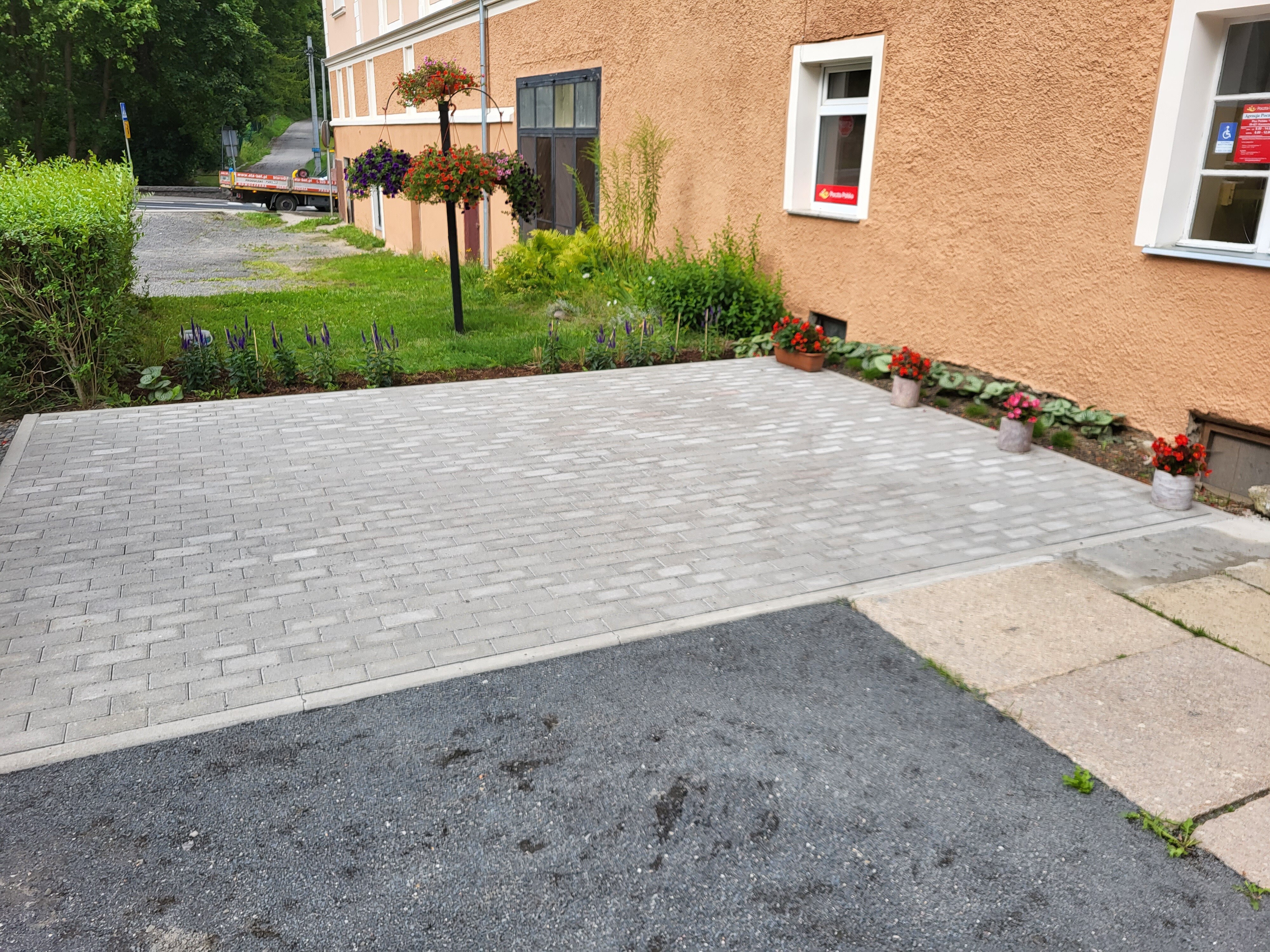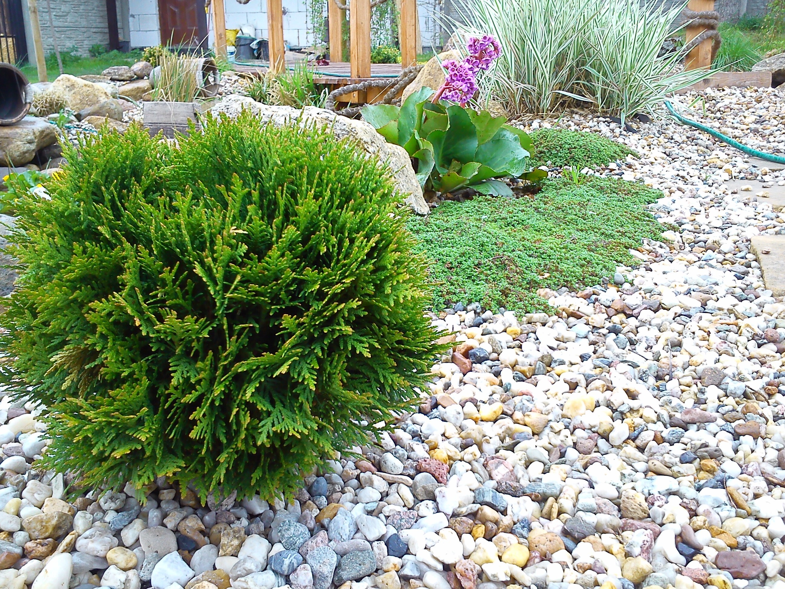 14. Budowa ogrodu przydomowego w Bogatyni. W ogrodzie utworzono oczko wodne wraz z roślinnością. Ponadto wykonano nawierzchnie naturalne z kostki granitowej i płyt kamiennych, nasadzenia roślin ozdobnych itp.