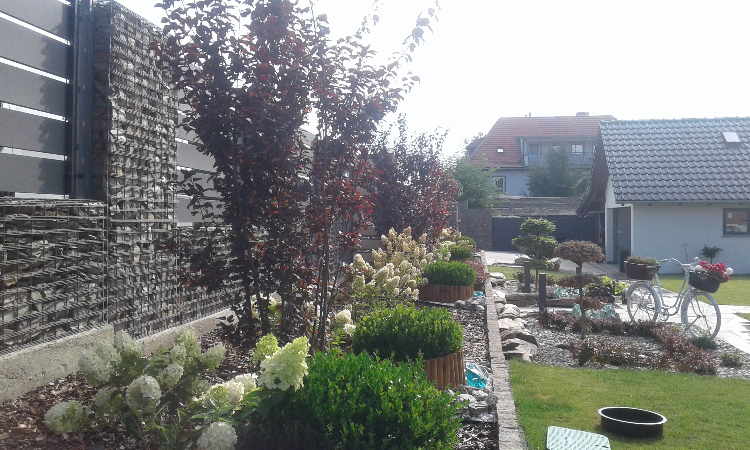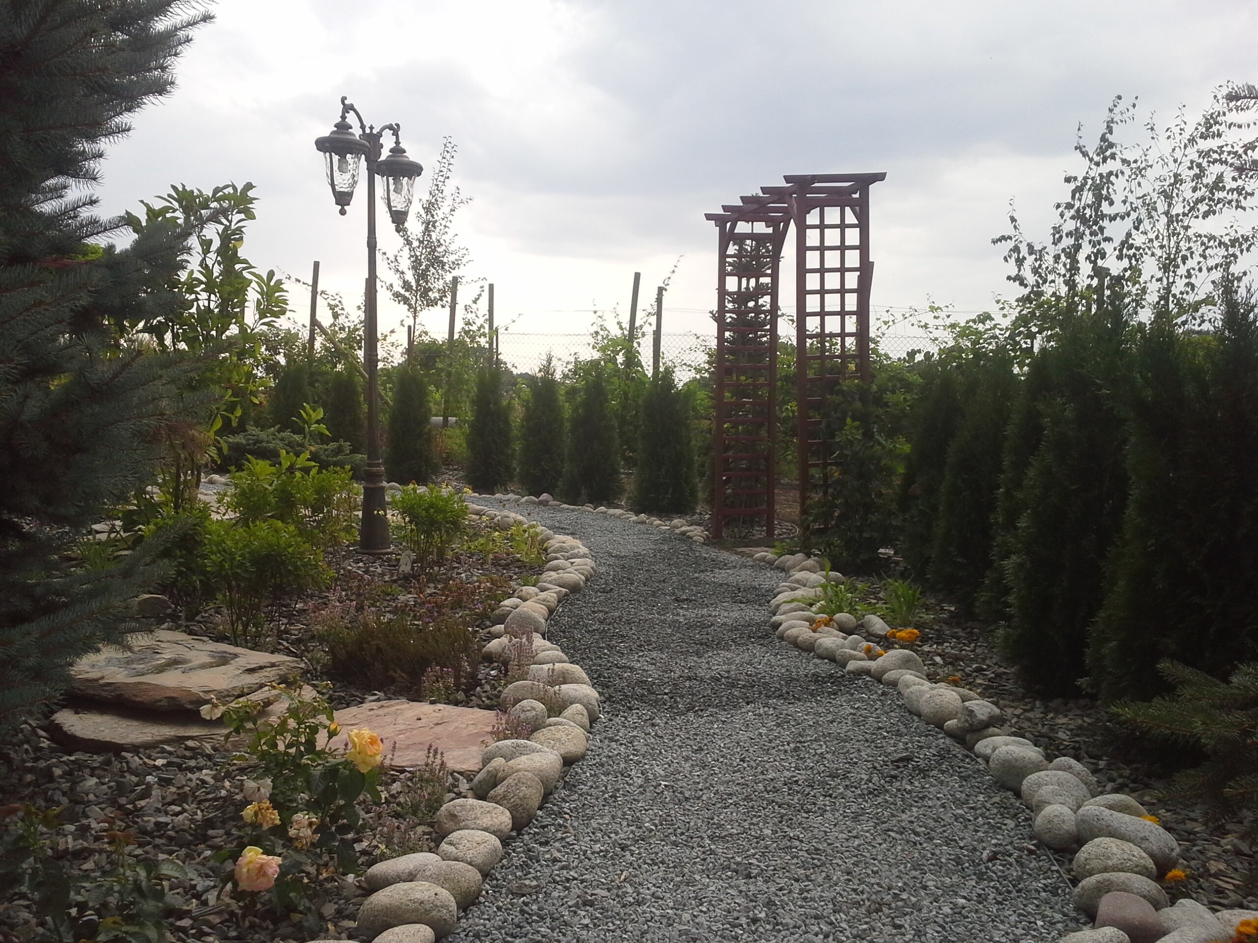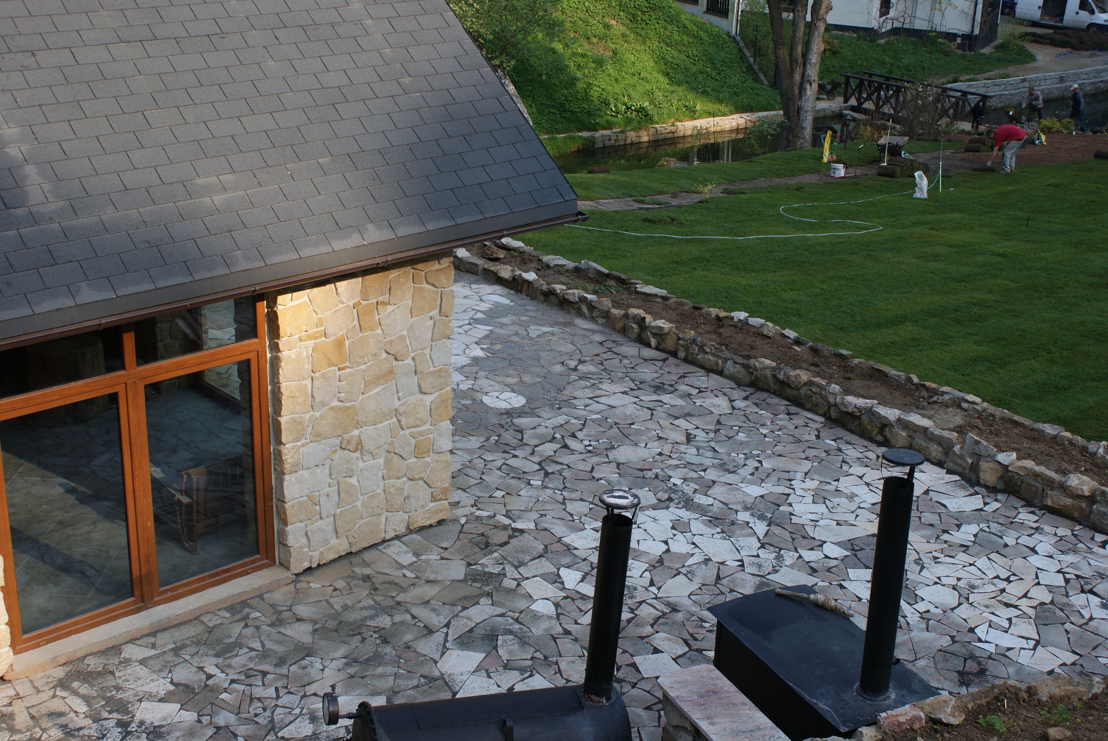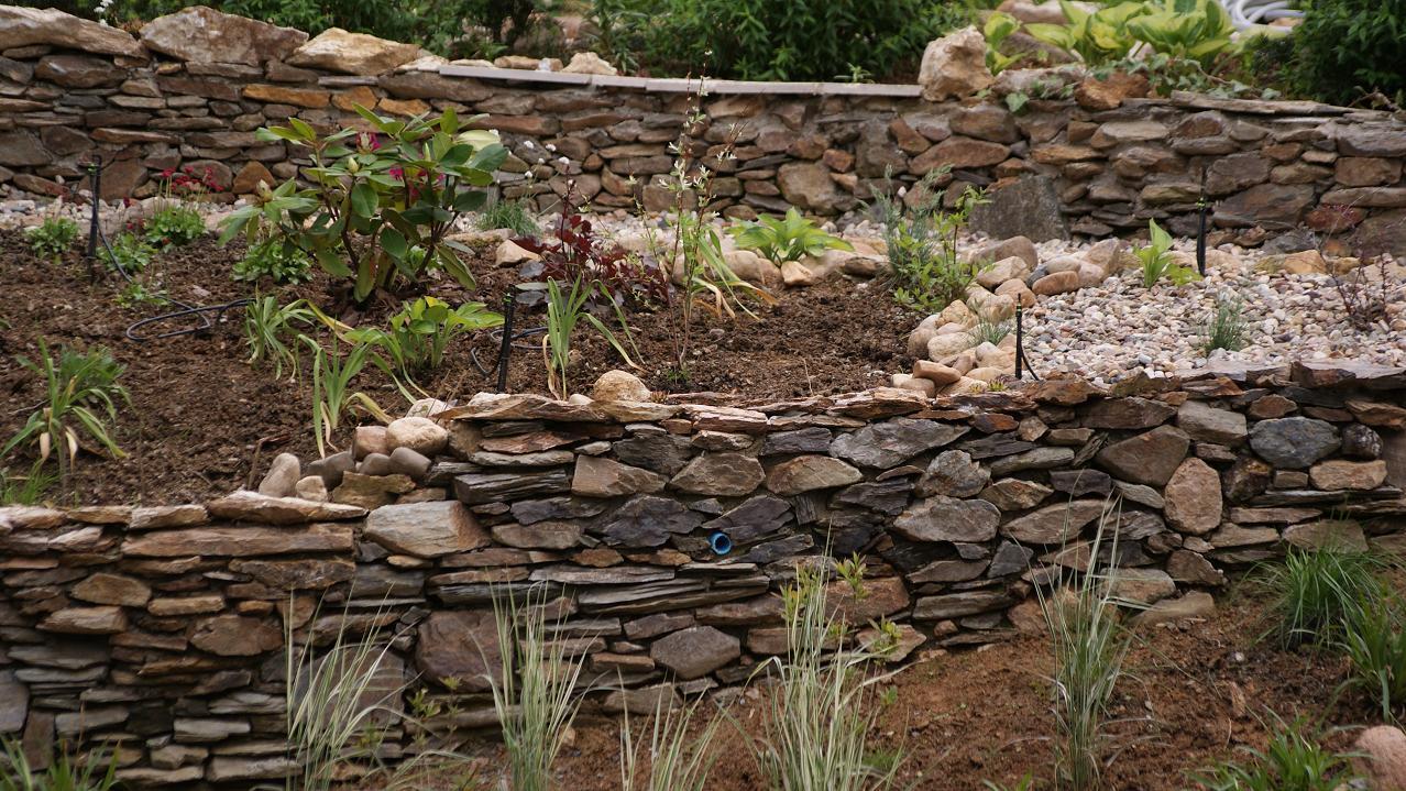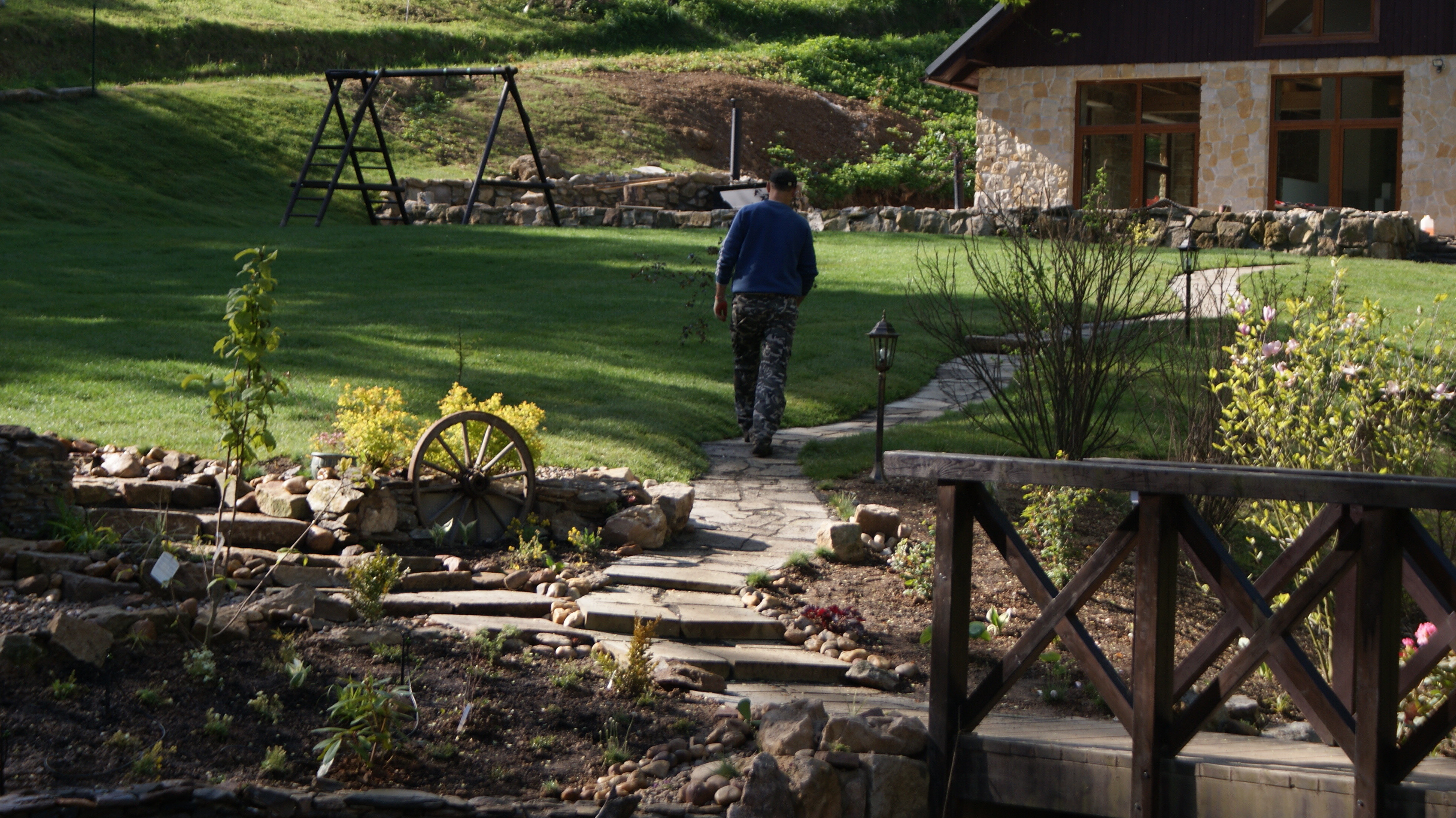 7. Budowa ogrodu przydomowego w stylu wiejskimW ogrodzie wykonano naturalnie ścieżki i place z kamienia, murki oporowe z łupka, dodatkowo wykonano nasadzenia roślinności ozdobnej oraz zabezpieczono skarpy trawnikiem w rolce.