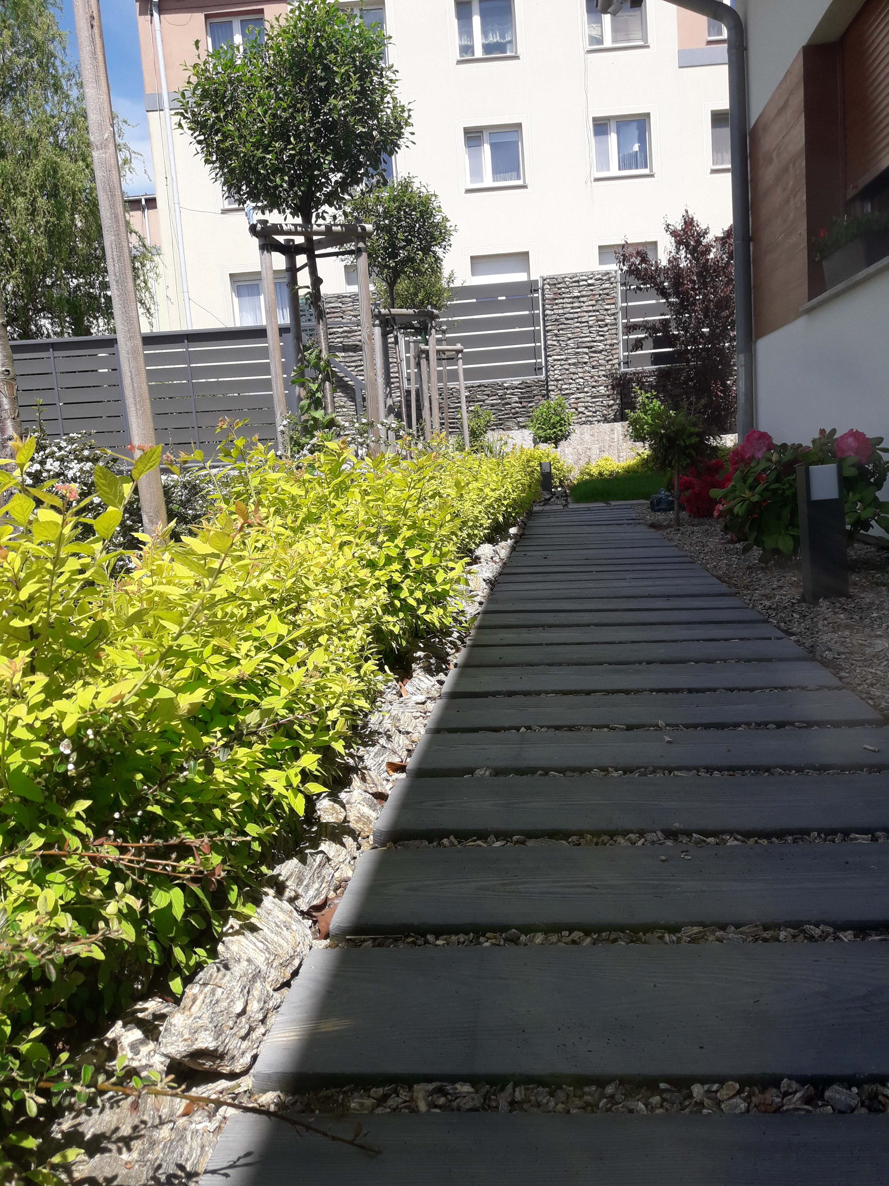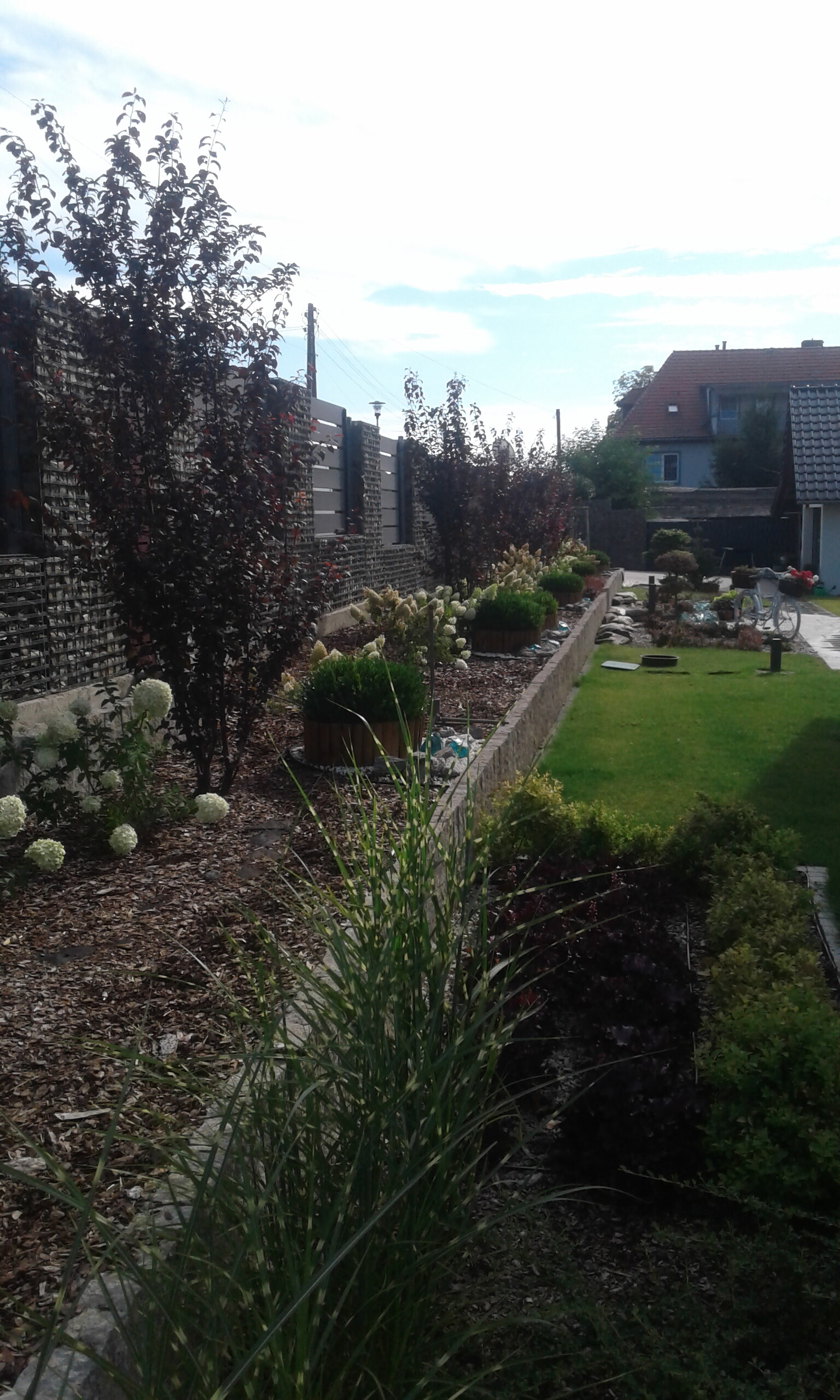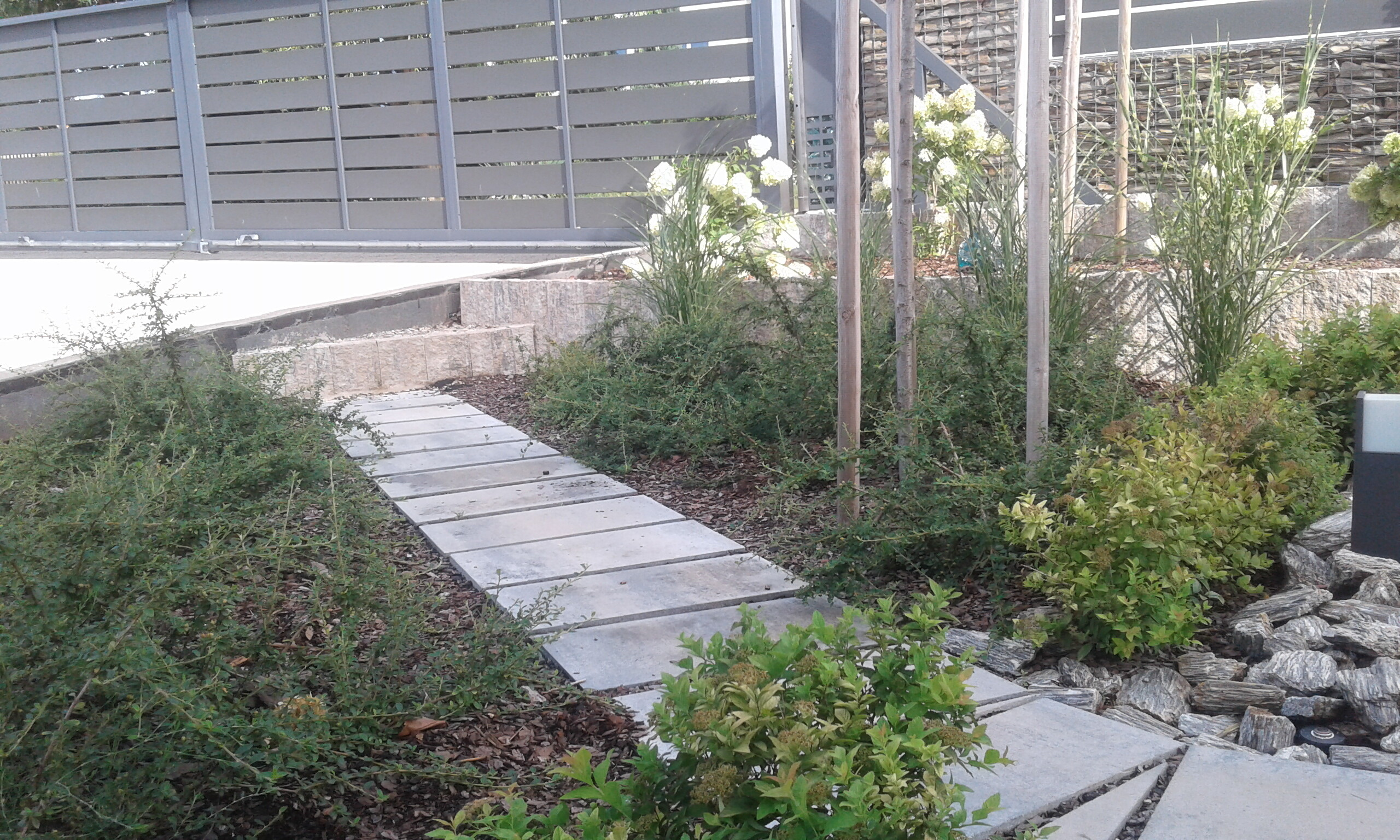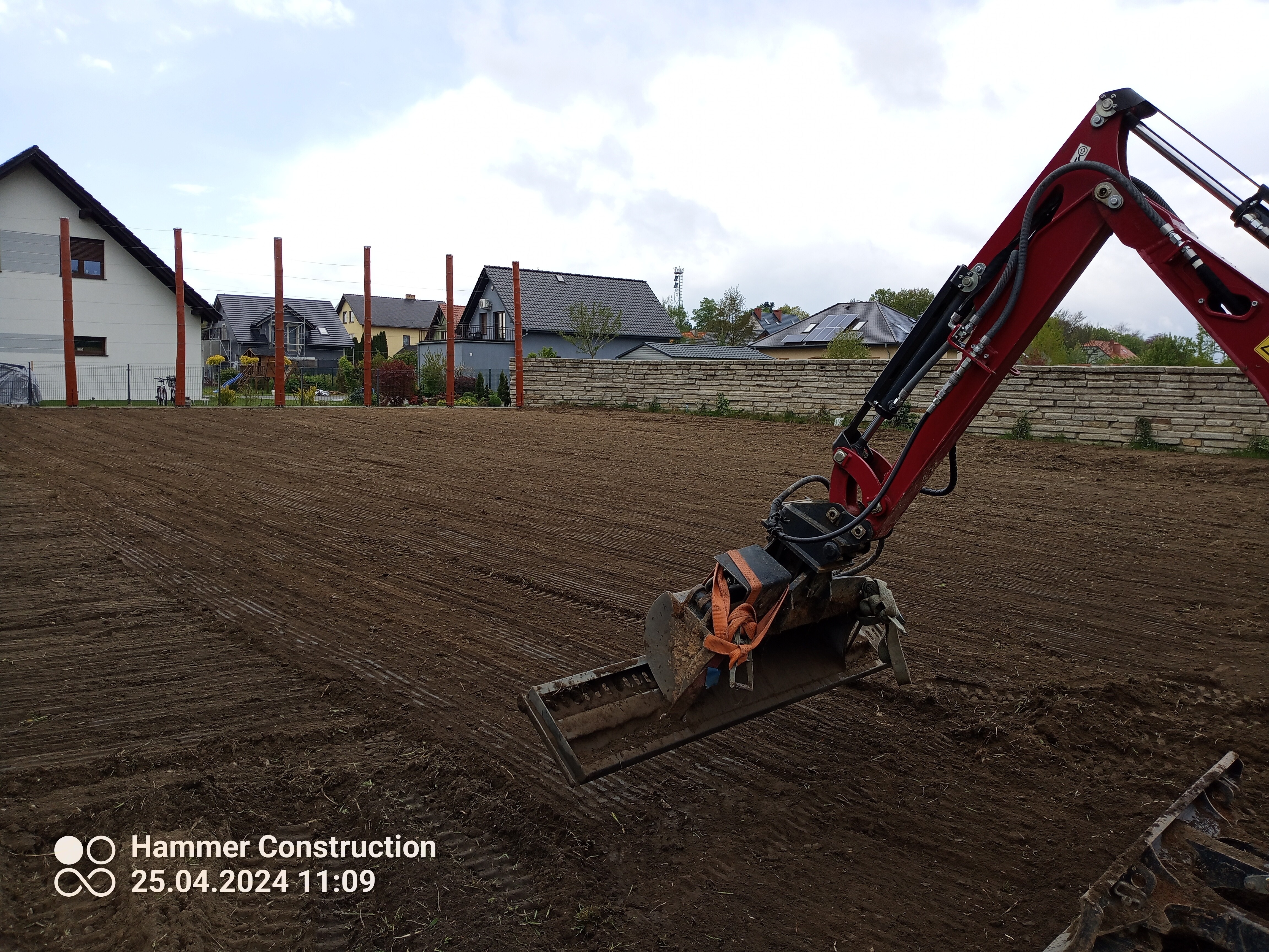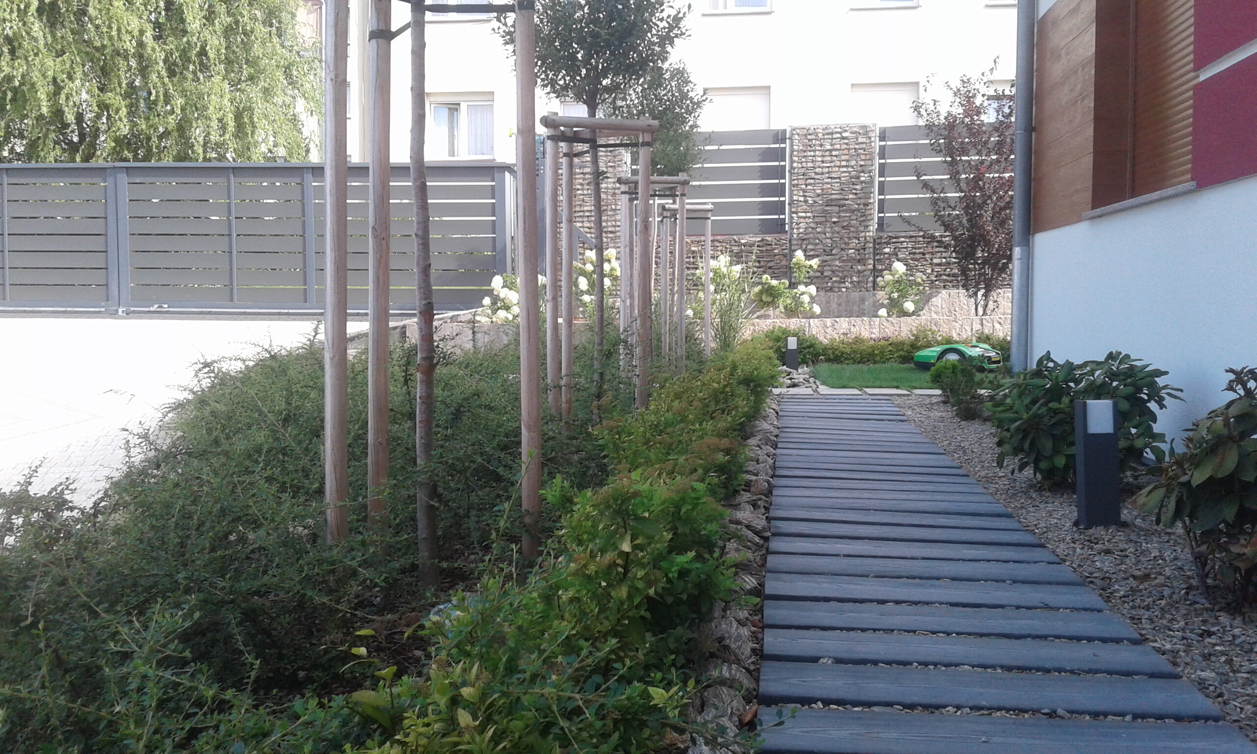 8. Realizacja ogrodu prywatnego. W ramach prac wykonano nowe nawierzchnie, system automatycznego nawodnienia, nasadzenia roślin ozdobnych. Ponadto na działce wykonano ogrom pracy związany z nasypem i profilowaniem mas ziemnych wraz z budową murów oporowych.