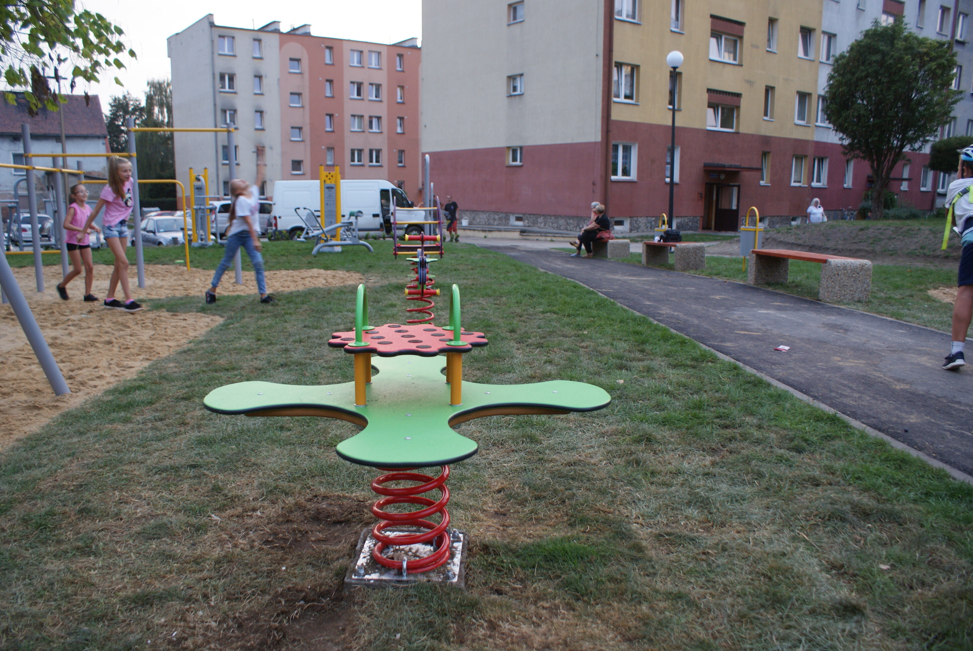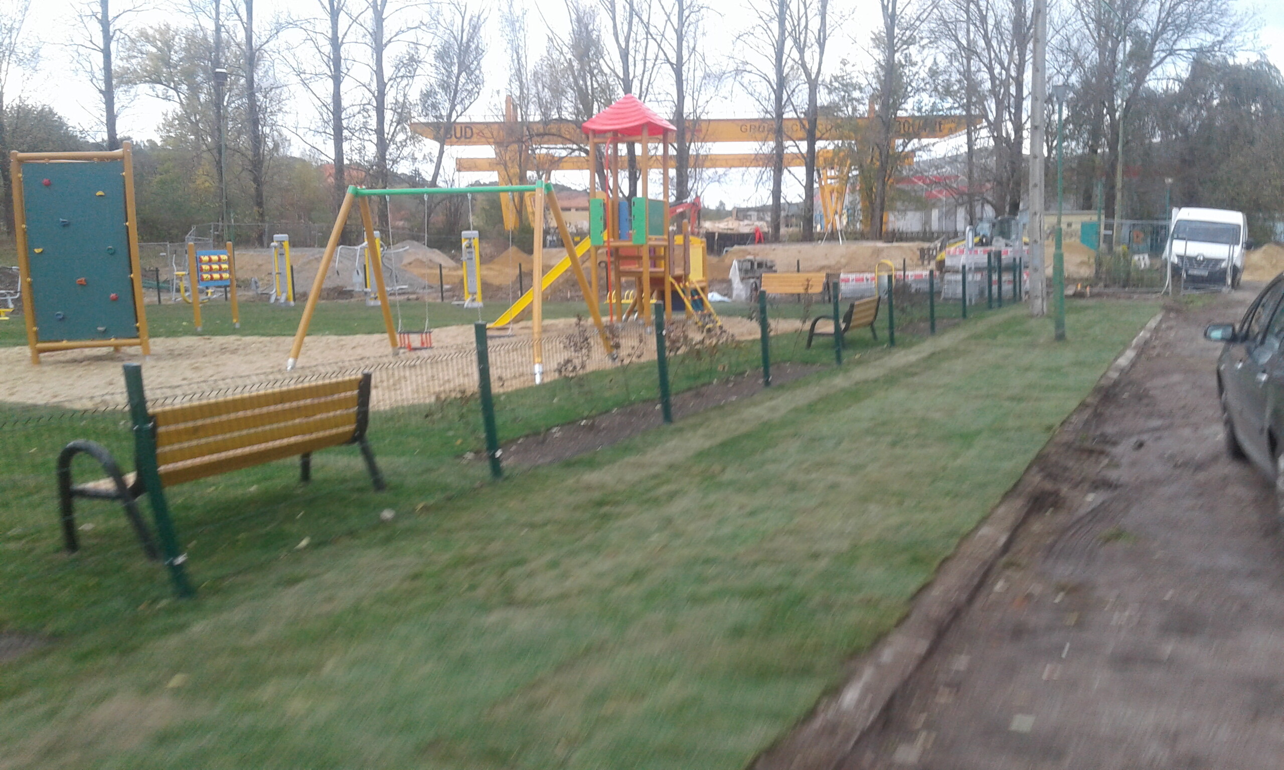 6. Remont placu zabaw na terenie Gminy Nowogrodziec przy ul. Kolejowej. Prace polegały na doposażeniu w urządzenia placu zabaw oraz w elementy małej architektury jak ławki, kosze. Ponadto wykonano nowe nawierzchnie amortyzujące.