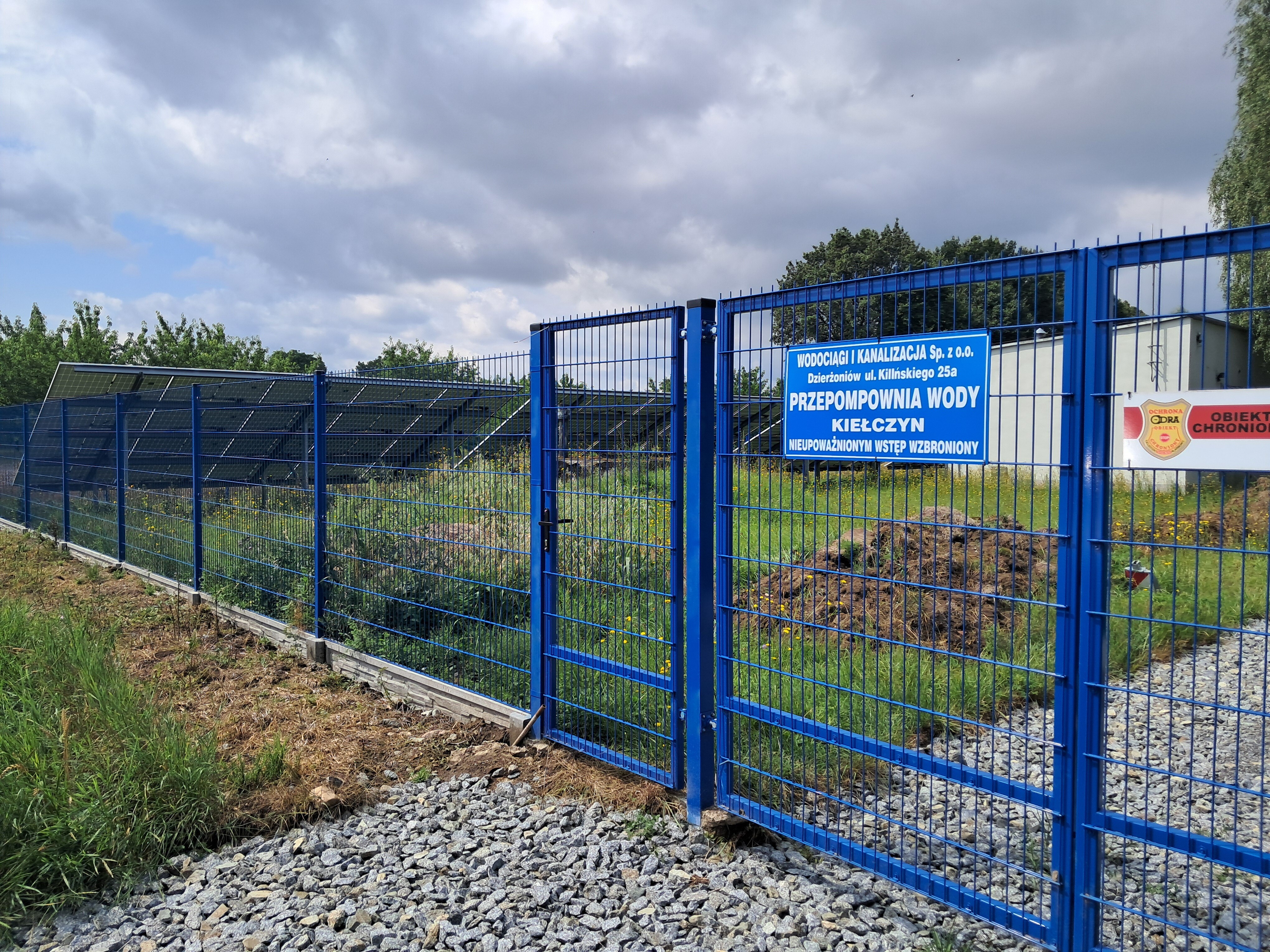 18. Budowa ogrodzenia dla WiK Dzierżoniów celem zabezpieczenia instalacji fotowoltaicznych na wybranych punktach poboru wody. W ramach prac wykonano ogrodzenie panelowe wraz z podmurówką i bramami o wys. 200cm. Łącznie wykonano ponad 2000 mb ogrodzenia.