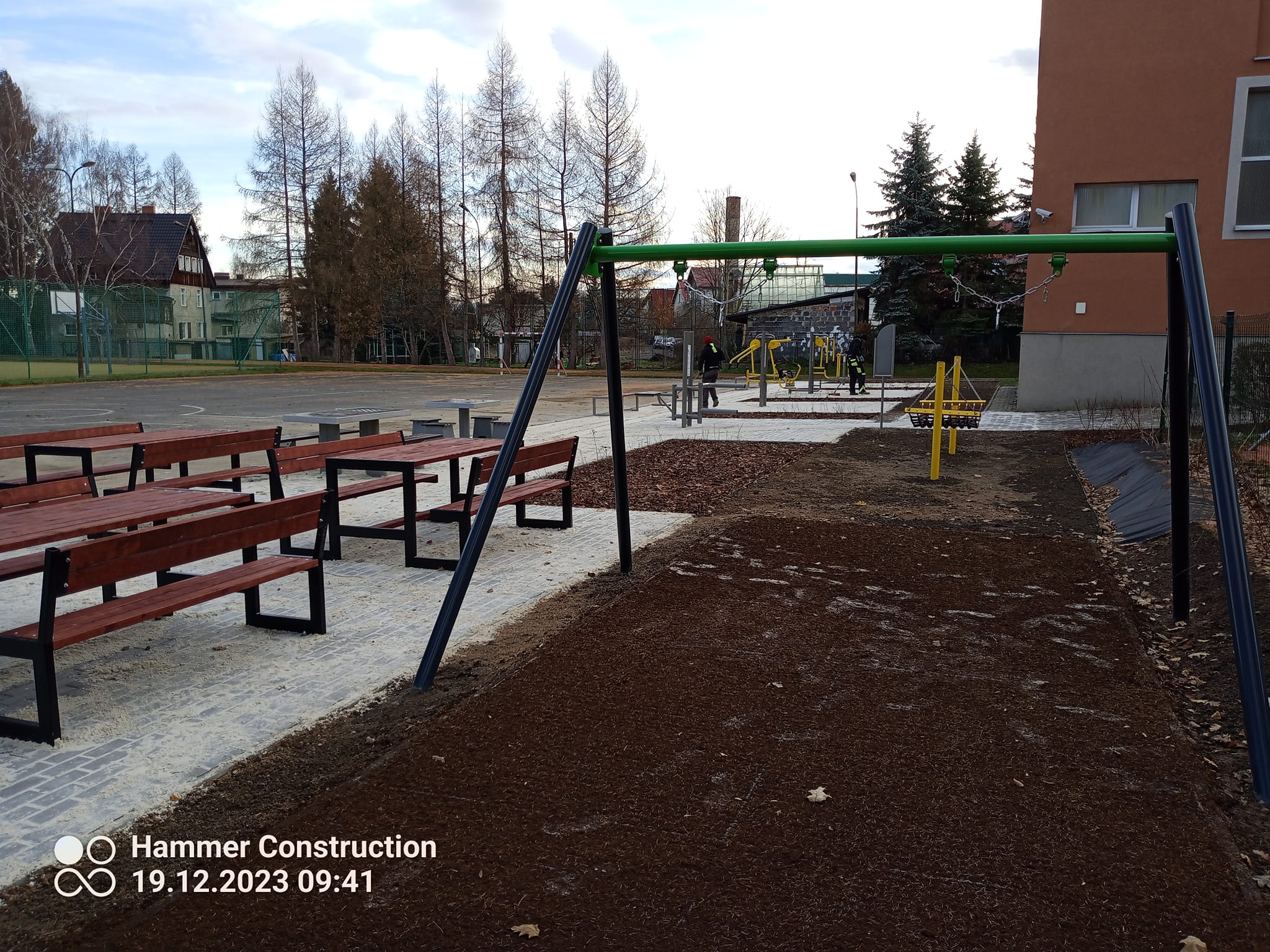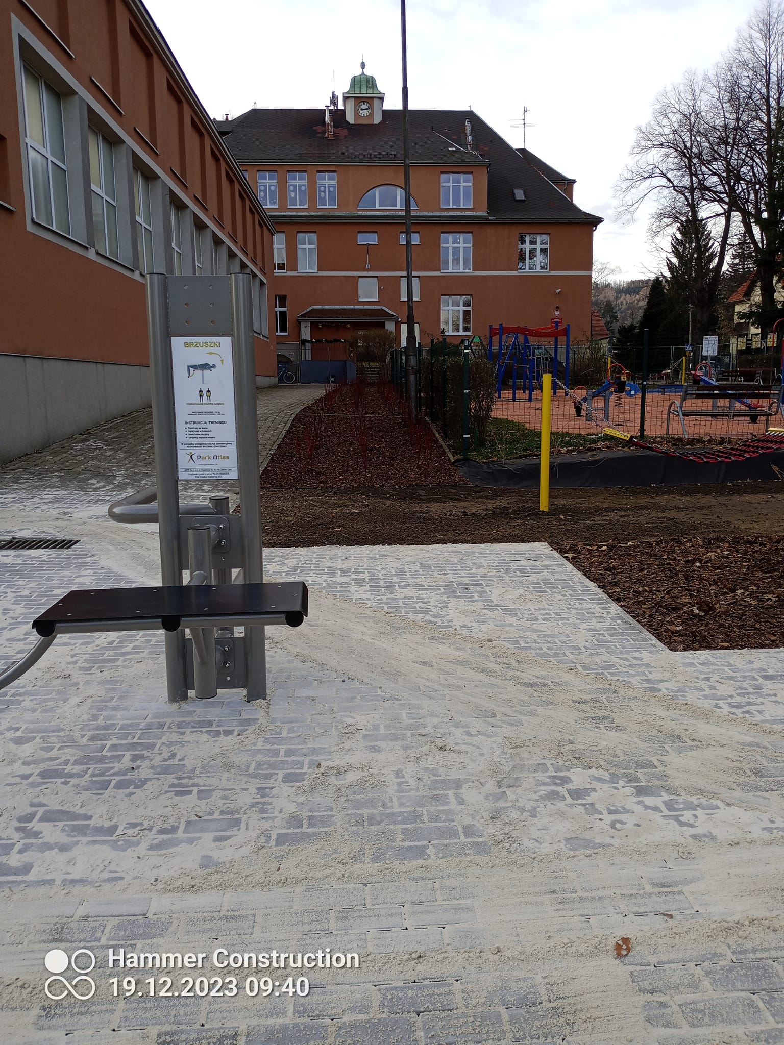 13. Zagospodarowanie strefy edukacyjno-rekreacyjnej "Ducha Gór" przy Szkole Podstawowej w miejscowości Piechowice. Prace obejmowały dostawę i montaż elementów ścieżki zdrowia, budowę placu zabaw, montaż strefy sportowej, budowę nawierzchni i oświetlenia terenu.