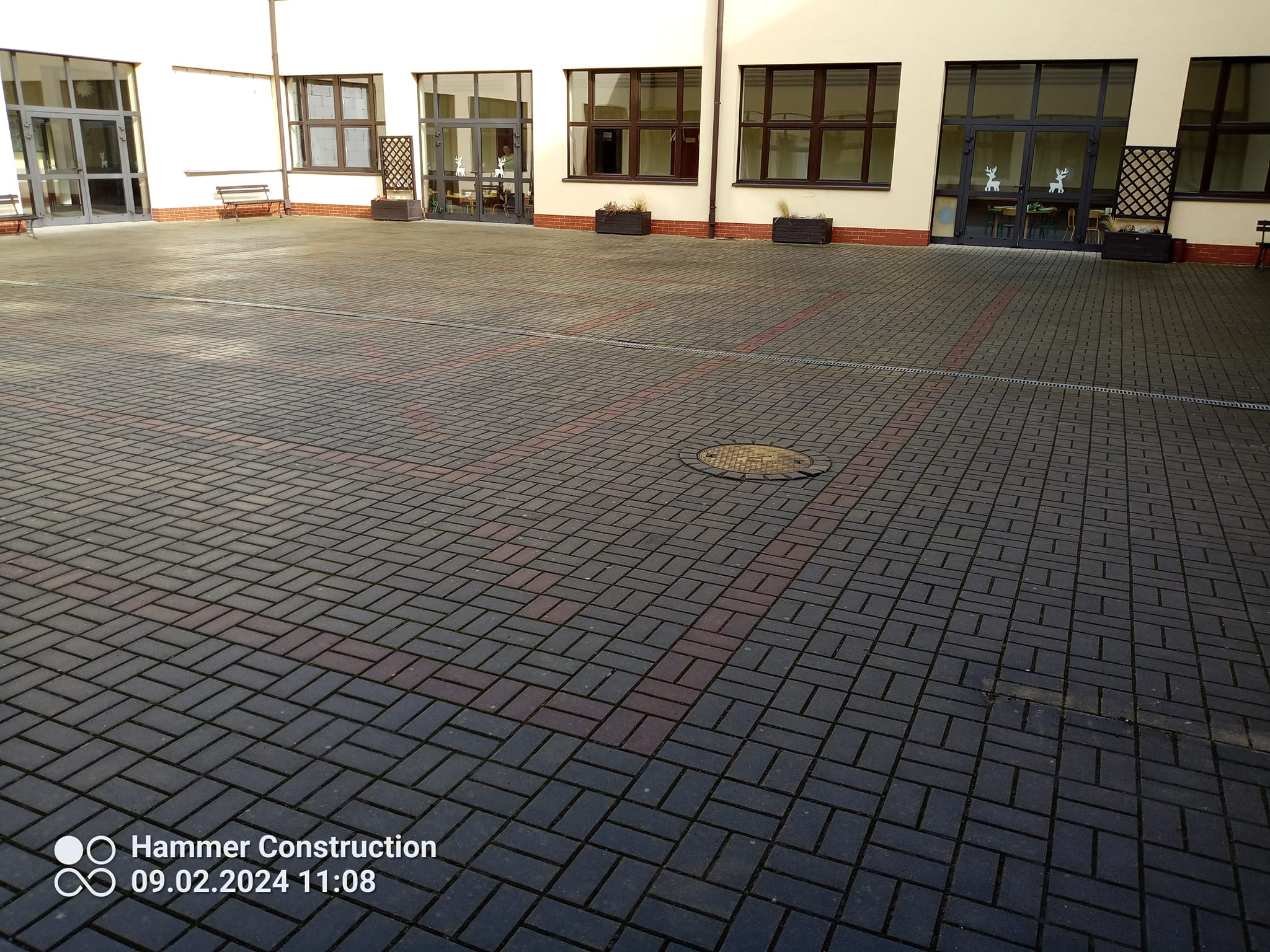 24. Budowa ogrodu przydomowego: w ramach inwestycji wykonano nawierzchnie z kostki brukowej, założono trawniki z rolki oraz trawniki siane. Obszary zielone dodatkowo zostały wyposażone w automatyczny system nawadniania.