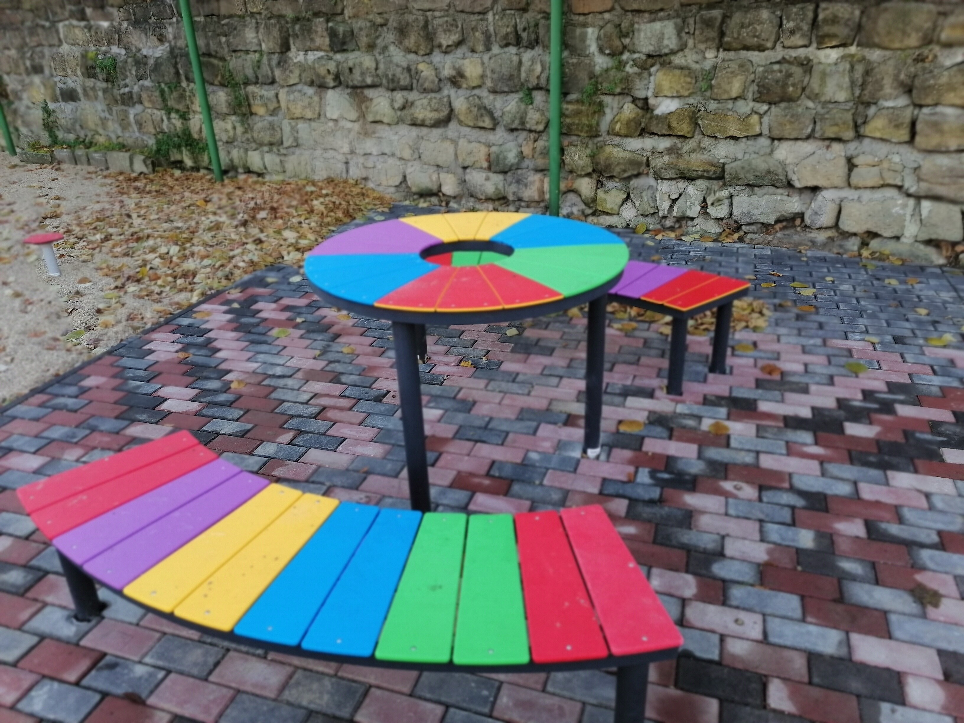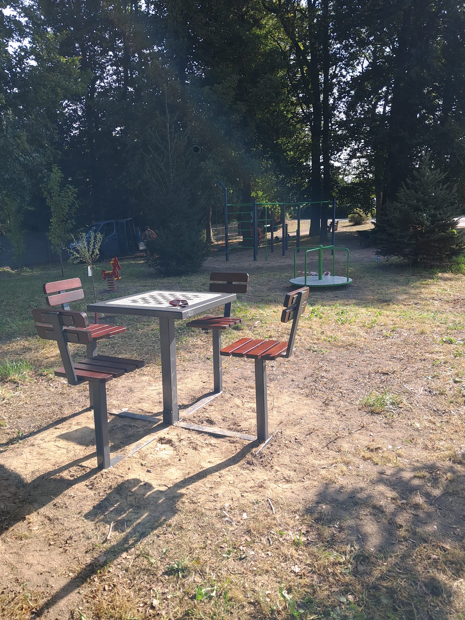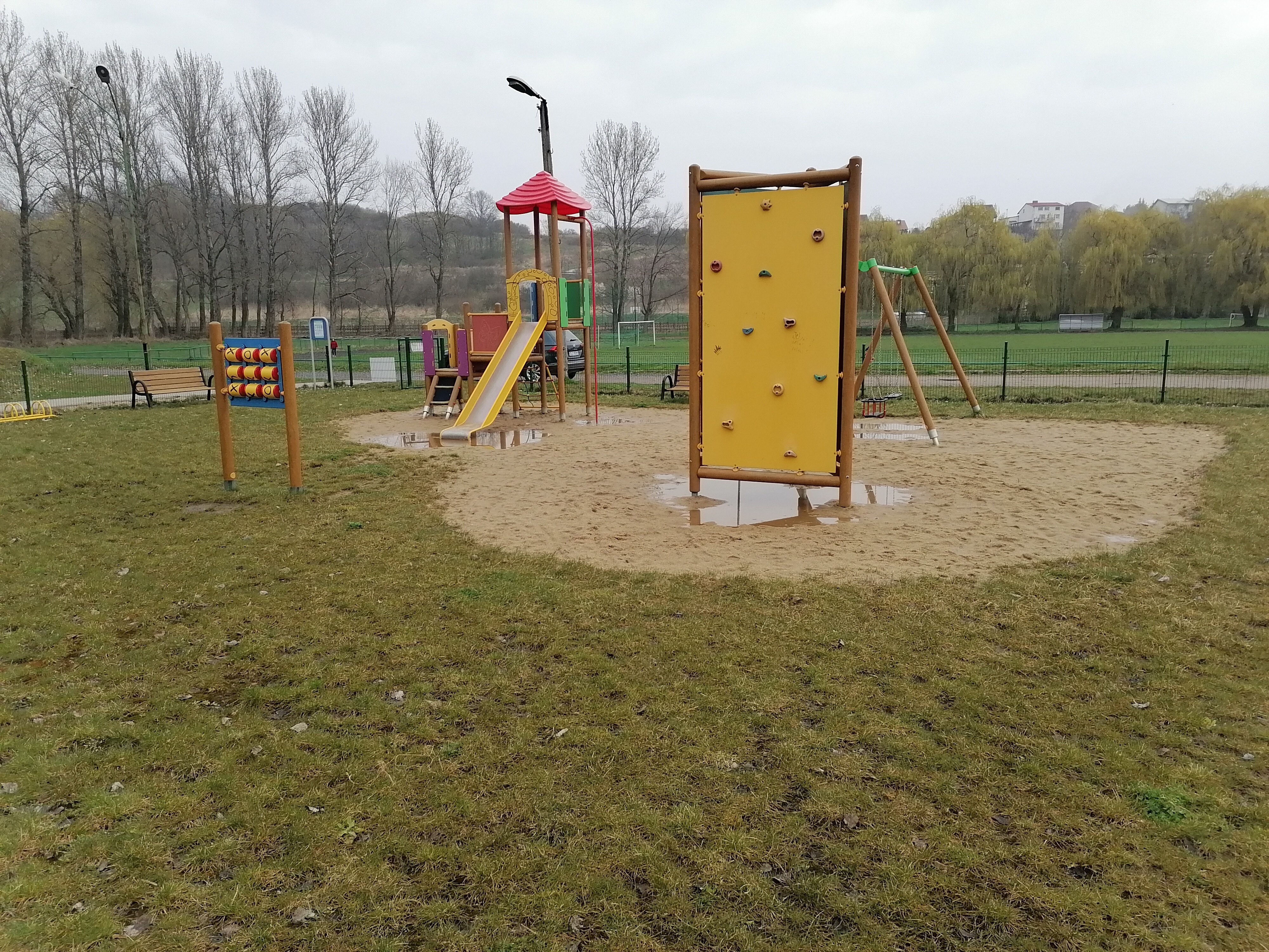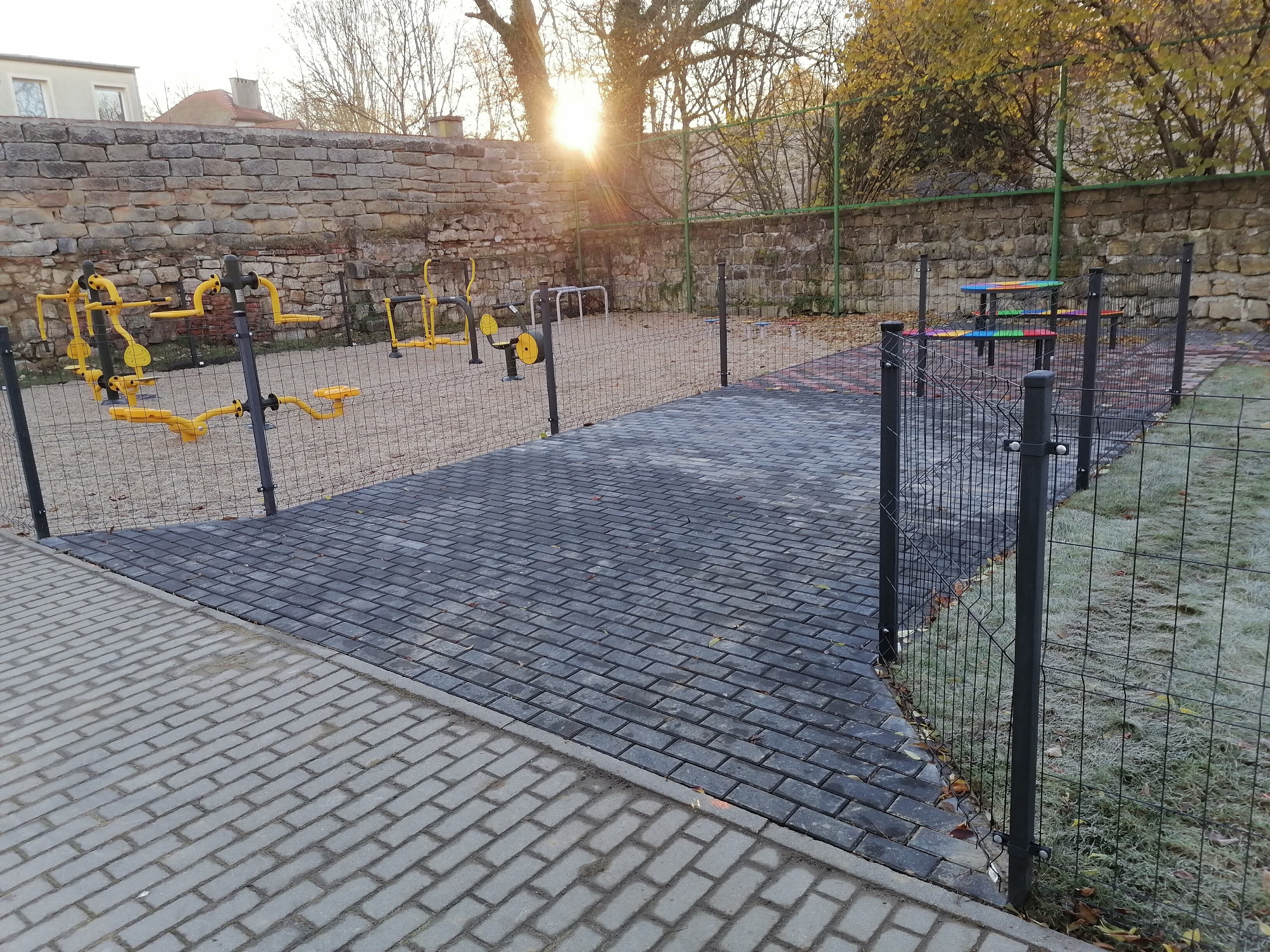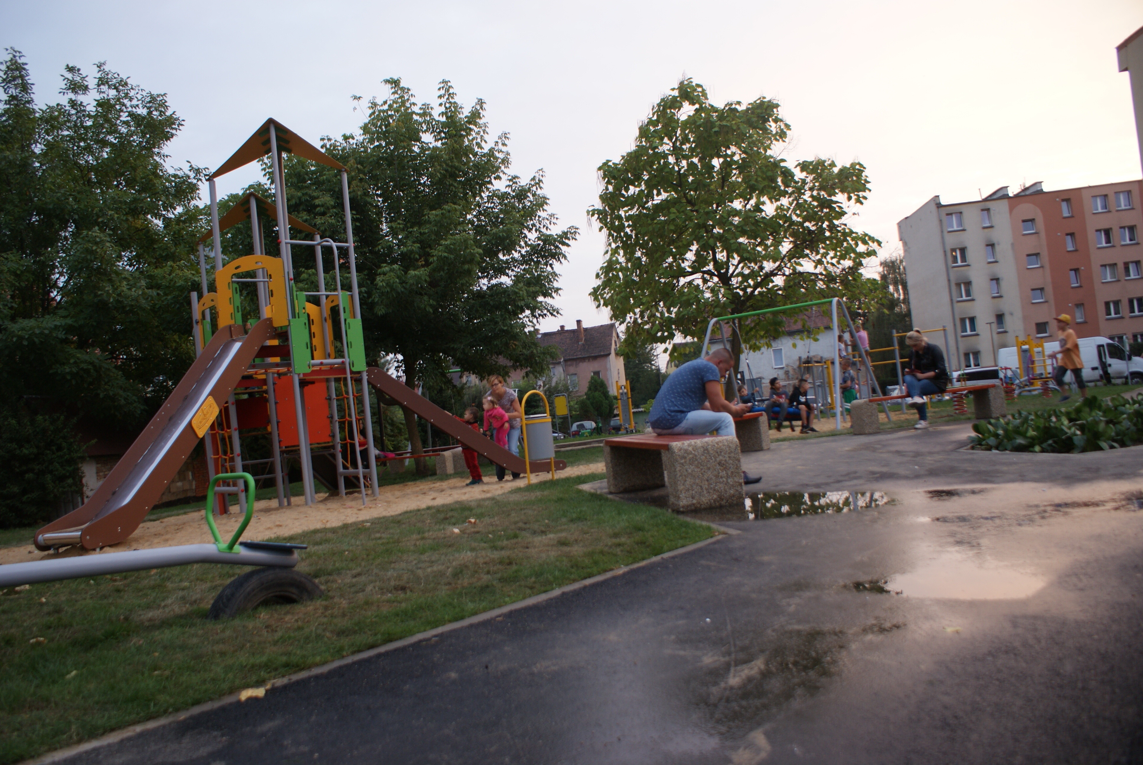 17. Plac zabaw dla małych dzieci w miejscowości Lwówek Śląski. W ramach prac zamontowano urządzenia siłowni zewnętrznej dla dzieci, elementy placu zabaw tj. równoważnia i ławki ze stolikami. Ponadto wykonano nowe nawierzchnie, boisko trawiaste wraz z ogrodzeniem terenu.