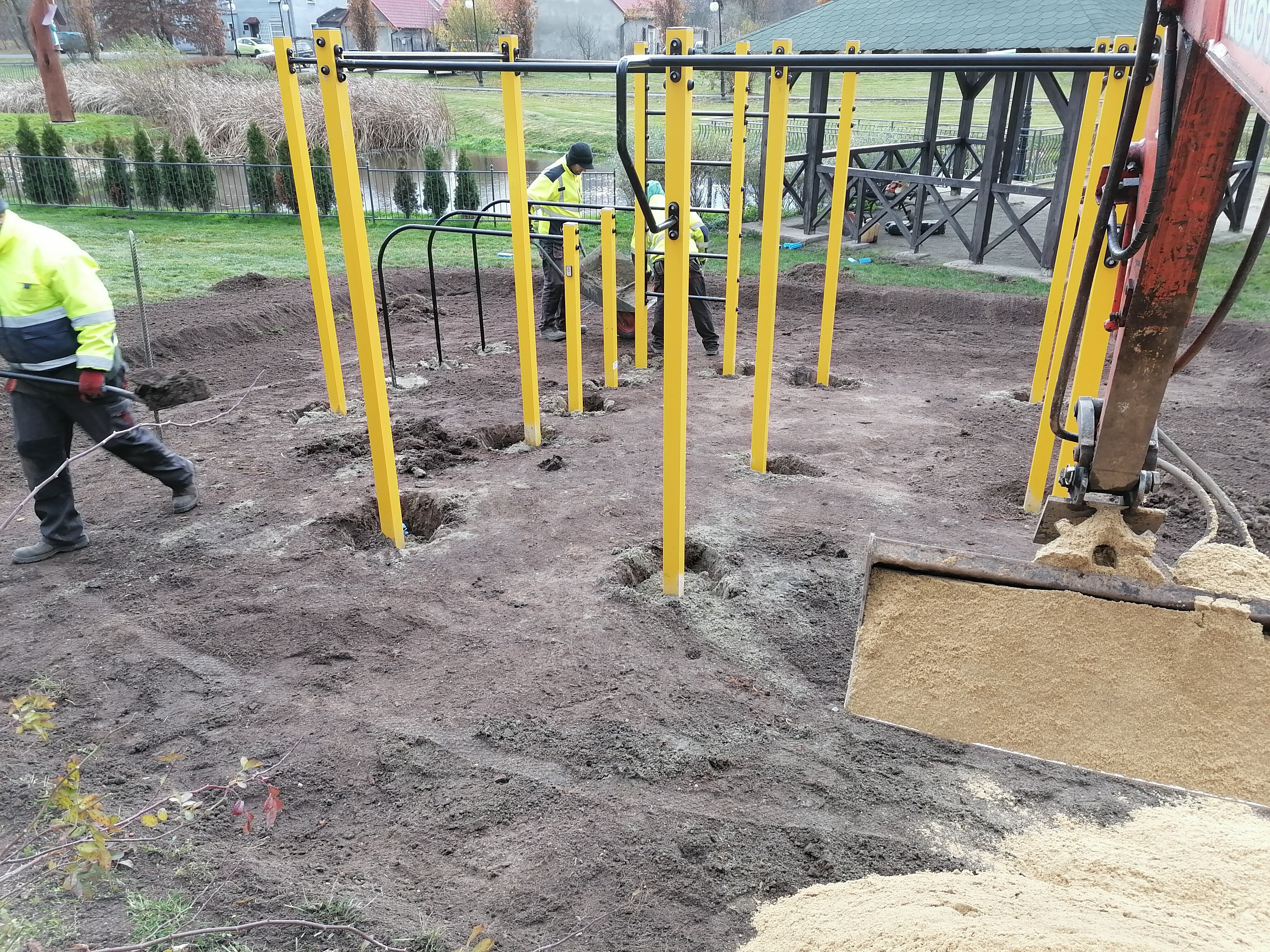 22. Montaż street workout dla Gminy Węgliniec wraz z budową nawierzchni amortyzującej.